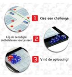 | Verpakkingsinhoud | Inhoud: 8 dobbelstenen 80 uitdagingen 80 oplossingen 1 meeneemdoosje spelregels in Nederlands en Frans |