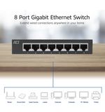 Met maar liefst 8 Gigabit Ethernet-poorten biedt deze switch voldoende aansluitmogelijkheden voor al je bekabelde apparaten, zoals desktopcomputers, laptops, smart-tv's, spelconsoles en meer. De installatie is een fluitje van een cent: je sluit eenvoudigweg de switch aan op je modem en vervolgens verbind je al je apparaten met de switch. Voor je het weet, geniet je van een supersnelle en stabiele netwerkverbinding.