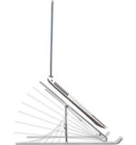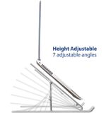 Deze laptopstandaard is ontworpen met het oog op gebruiksgemak. Met een draagbaar en opvouwbaar ontwerp is het gemakkelijk om de standaard mee te nemen in je rugzak of tas. Zo is het een ideale oplossing voor degenen die vaak van werkplek veranderen, of het nu een café is, een vergaderruimte of je favoriete plek in huis. Bij het uitklappen kun je de standaard in zes verschillende kijkhoeken instellen, waardoor je altijd de meest comfortabele houding kunt vinden. Dit bevordert niet alleen je productiviteit, maar voorkomt ook ongemakkelijke houdingen die kunnen leiden tot rug- en nekklachten.