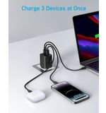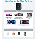 De Anker 336 Charger is uitgerust met drie poorten: twee USB-A poorten en één USB-C poort. Dit betekent dat je verschillende apparaten tegelijk kunt aansluiten zonder in te boeten op laadcapaciteit. De geavanceerde technologie die in deze oplader is toegepast zorgt ervoor dat de hoogste laadcapaciteit optimaal wordt benut, wat resulteert in een snellere oplaadtijd. Zo hoef je nooit lang te wachten voordat je weer verder kunt met waar je mee bezig was.
