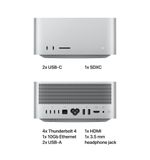 De Apple Mac Studio - M1 Ultra 20C64C 128GB 2TB is ook uitgerust met diverse aansluitingen om je apparaten te verbinden. Er zijn vier USB-poorten en een HDMI-poort. Daarnaast heeft deze laptop ook een Thunderbolt 3-poort en een audio-uitgang.