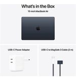 De Apple MacBook Air 15 Inch in de stijlvolle kleur Midnight is een perfecte samensmelting van elegantie, krachtige prestaties en ongeëvenaard gebruiksgemak. Met zijn slanke ontwerp en lichte gewicht is deze laptop ideaal voor zowel professioneel als persoonlijk gebruik. Of je nu onderweg bent naar een vergadering, in een café werkt of thuis aan een creatief project, de MacBook Air biedt de functionaliteit en veelzijdigheid die je nodig hebt.