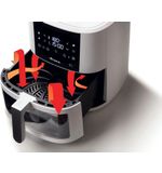Geniet van een culinaire ervaring zonder gedoe dankzij de 8 voorgeprogrammeerde kookinstellingen die je helpen bij het bereiden van diverse gerechten met een druk op de knop. Met een instelbare temperatuur tot 200 graden Celsius kan je eindeloos variëren en de perfecte temperatuur kiezen voor elk gerecht dat je bereidt. Voor een transparante controle van het kookproces is de friteuse uitgerust met een handig transparant mandje, zodat je nauwlettend in de gaten kan houden hoe je maaltijd langzaam maar zeker die heerlijke goudbruine kleur krijgt.