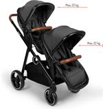 De Duo Kinderwagen Baninni Luiz Gray is voorzien van een stevig frame dat zorgt voor stabiliteit en duurzaamheid. Hij wordt geleverd met twee comfortabele zitjes waarin je kinderen comfortabel kunnen zitten en genieten van het uitzicht. De zittingen zijn verstelbaar, zodat je de rugleuning kunt aanpassen aan de behoeften van je kinderen. De kinderwagen heeft ook een verstelbare voetensteun, zodat je kinderen hun benen kunnen strekken en ontspannen. Het zachte en gewatteerde zitje zorgt voor extra comfort, zelfs tijdens langere wandelingen.