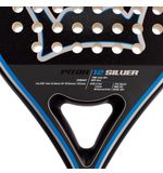 Het ontwerp van de Black Crown Piton 12 Silver is niet alleen esthetisch aantrekkelijk, maar ook functioneel doordacht. Het ronde racketblad biedt een uitgebalanceerde mix van controle en kracht, waardoor je moeiteloos kunt reageren op elke slag. De 12K carbon constructie zorgt voor optimale stijfheid en duurzaamheid, terwijl de zachte EVA-rubberen kern trillingen minimaliseert en het speelcomfort verhoogt.