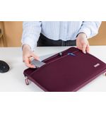 Niet alleen de bescherming, maar ook het design van de laptophoes is tot in de puntjes verzorgd. De dieprode kleur geeft de hoes een elegante en moderne uitstraling, waardoor je met trots jouw laptop kunt dragen en presenteren. Of je nu onderweg bent naar een vergadering, een afspraak hebt of gewoon in een café werkt, met deze laptophoes maak je zeker een stijlvolle indruk.