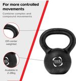 Naast de stevige grip heeft de kettlebell een vlakke en stabiele onderkant. Dit ontwerp voorkomt dat de kettlebell wegrolt wanneer je deze neerlegt, waardoor je altijd klaar bent voor de volgende oefening. De stabiliteit draagt bij aan een geruststellend gevoel tijdens het trainen, omdat je je kunt concentreren op je form en techniek, wetende dat je apparatuur veilig en betrouwbaar is.