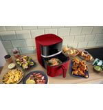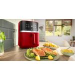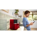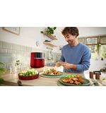 Met een stijlvolle dieprode afwerking voegt dit apparaat een vleugje kleur en flair toe aan je keuken. Het compacte formaat maakt het eenvoudig om de air fryer op te bergen wanneer je hem niet gebruikt, terwijl het aantrekkelijke design ervoor zorgt dat hij ook aantrekkelijk staat op je aanrecht. Bovendien is het gebruiksgemak een van de sterkste punten van de Bosch air fryer. De intuïtieve bediening met een digitaal display maakt de instelling van de kooktijd en temperatuur eenvoudig, zodat je in een handomdraai aan de slag kunt.