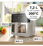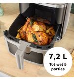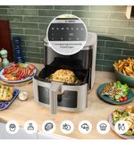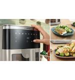 Met een royale inhoud biedt de air fryer voldoende ruimte om maaltijden voor het hele gezin te bereiden. Dit vergemakkelijkt niet alleen de dagelijkse bereiding van uw favoriete gerechten, maar maakt ook gezellige etentjes met vrienden en familie mogelijk. Het stijlvolle ontwerp voegt ook een vleugje klasse toe aan uw keuken, waardoor het apparaat niet alleen functioneel maar ook een echte eyecatcher is.