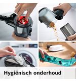 Dankzij de krachtige prestaties van de Bosch Unlimited 7 ProHygienic Aqua BCS71HYG1 wordt schoonmaken een moeiteloze taak. Met de DigitalSpin Motor en de All Floor HighPower borstel ben je verzekerd van een diepe en grondige reiniging op alle vloertypen, van tapijt tot harde vloeren. Zelfs dierenharen en fijnstof worden effectief opgezogen, waardoor je huis altijd fris en schoon aanvoelt.
