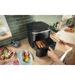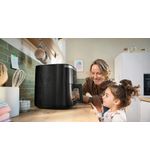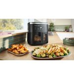 Een andere opvallende eigenschap van de Serie 6 Air Fryer is de ruime inhoud. Met een capaciteit die geschikt is voor het bereiden van maaltijden voor het hele gezin, hoef je je geen zorgen te maken dat je te weinig kunt bereiden. Iedereen kan genieten van een heerlijke, knapperige maaltijd zonder dat je meerdere rondes hoeft te koken. Het design is niet alleen functioneel, maar ook stijlvol. Het zwarte model past moeiteloos in elke moderne keuken, waardoor het een ware blikvanger is op jouw aanrecht.