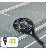 De Bovista Padel Racket in de opvallende kleuren geel en paars is een uitmuntende keuze voor zowel beginners als ervaren spelers die hun spel naar een hoger niveau willen tillen. Dit racket straalt niet alleen stijl uit, maar biedt ook uitstekende prestaties op de padelbaan. Het lichte gewicht zorgt voor een soepele swing en biedt de speler de mogelijkheid om snel en wendbaar te bewegen. Dankzij de ergonomische grip ligt het racket prettig in de hand, wat zorgt voor een verbeterde controle en kracht tijdens elke slag.