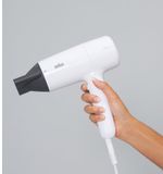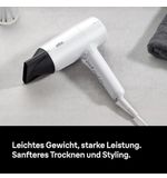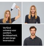 Het ergonomische ontwerp van deze föhn zorgt voor een comfortabele grip en gemakkelijke bediening. De compacte en lichtgewicht behuizing maakt het ook ideaal voor op reis, zodat je overal en altijd kunt genieten van een perfect gestyled kapsel.