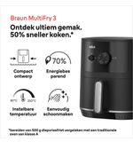 Met de Braun Multi Fry 3 opent zich een wereld van smaakvolle en gezonde kookmogelijkheden. Laat je inspireren om iedere maaltijd bijzonder te maken. Het product roept niet alleen het gevoel van genieten op, maar maakt het ook eenvoudig om gezondere keuzes te maken zonder in te boeten op smaak. Geniet van perfect bereide gerechten, keer op keer, en maak van elke eetervaring iets om van te genieten.
