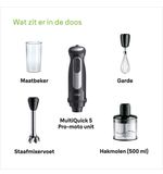 De Braun MultiQuick 5 Pro MQ55.236M is niet alleen een krachtige keukenhulp, maar ook een stijlvolle toevoeging aan je keuken. Met zijn moderne design en hoogwaardige afwerking mag deze staafmixer gezien worden. Kortom, met de Braun MultiQuick 5 Pro MQ55.236M haal je een betrouwbare partner in huis die je kookkunsten naar een hoger niveau tilt en je keer op keer laat genieten van perfecte resultaten.