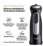 Met de Braun MultiQuick 5 Pro MQ55.755M haal je een echte alleskunner in huis voor in de keuken. Deze krachtige en veelzijdige staafmixer helpt je moeiteloos bij het bereiden van de meest uiteenlopende gerechten. Of je nu soepen, sauzen, smoothies of babyvoeding wilt maken, met deze Braun staafmixer wordt koken en bakken een waar genot.