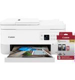 Haal de veelzijdige printmogelijkheden van de Canon PIXMA TS7451I + 1 set extra inkt + fotopapier in huis en ontdek een wereld waarin creativiteit en kwaliteit samenkomen. Deze moderne printer is niet alleen een technologisch hoogstandje, maar vormt ook een bron van inspiratie voor het hele gezin. Van het printen van kleurrijke schoolprojecten tot het produceren van professioneel ogende documenten voor werk; met deze alleskunner ben je verzekerd van verbluffende resultaten.
