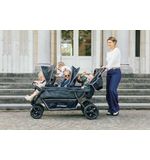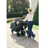 Daarnaast is de kinderwagen uitgerust met handige opbergruimtes, zodat belangrijke spulletjes zoals luiers, waterflessen en snacks altijd binnen handbereik zijn. Dit maakt het leven met meerdere kinderen een stuk makkelijker. De luxe uitstraling en praktische functionaliteit dragen bij aan een zorgeloze ervaring, waar ouders met plezier op terugkijken.