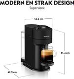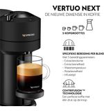 De'Longhi Nespresso Vertuo Next ENV120.BM in mat zwart is meer dan alleen een koffiemachine; het is een symbool van kwaliteit en verfijning voor de echte koffieliefhebber. Met een slank en modern ontw...