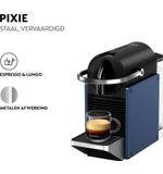 De'Longhi Nespresso Pixie EN127.BL is een elegante en compacte koffiemachine die de perfectie van een koffiespecialiteit naar jouw keuken brengt. Met zijn stijlvolle blauw en metalen afwerking is deze machine niet alleen een functioneel apparaat, maar ook een eyecatcher die met elke keukeninrichting harmonieert. Zodra je de Pixie aanschakelt, voel je de energie die het apparaat uitstraalt. De snelle opwarmtijd van slechts 25 seconden maakt het mogelijk om binnen no-time van je favoriete koffie te genieten. Of je nu kiest voor een krachtige espresso of een heerlijke lungo, elke kop is een waar genot.