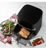 Deze airfryer is ontworpen met gebruiksgemak in gedachten. De intuïtieve bediening maakt het mogelijk om eenvoudig de juiste temperatuur en bereidingstijd in te stellen. Hierdoor kunt u binnen enkele minuten aan de slag, zonder ingewikkelde instructies of gedoe. De bijgeleverde recepten helpen u om het meeste uit uw airfryer te halen, zodat u geïnspireerd de keuken in kunt gaan en nieuwe gerechten kunt uitproberen. Dit maakt koken niet alleen efficiënt, maar ook leuk en creatief.
