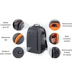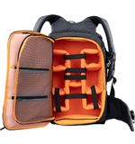 Wat deze fototas echt bijzonder maakt, is de doordachte indeling. Het hoofdvak biedt ruimte voor je camera, lenzen en accessoires, terwijl het speciale laptopvak plaats biedt aan een laptop tot 15 inch. Zo kun je niet alleen je camera-apparatuur, maar ook je laptop veilig en georganiseerd opbergen. Daarnaast zijn er diverse vakken en compartimenten voor het ordelijk opbergen van je geheugenkaarten, batterijen, kabels en persoonlijke spullen. Met de Dörr Photo Backpack Prag Pro 20L Grijs heb je altijd alles bij de hand.