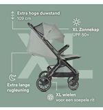 De Agave Green kleur van de buggy straalt rust en natuurlijkheid uit, waardoor elke wandeling een ontspannen en positieve ervaring wordt. Of je nu een rustige wandeling in het park maakt of op avontuur gaat in de stad, met de Easywalker Jackey2 XL in Agave Green ben je altijd stijlvol onderweg.