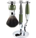 De Scheerset Diffusion 36 - Mach3 - Fibre - olive biedt een luxueuze en verfijnde ervaring voor elke man die waarde hecht aan zijn verzorgingsroutine. Deze set, met een elegant ontwerp in een olijfgro...