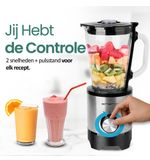 Deze blender combineert kracht met gebruiksgemak, dankzij de eenvoudige bediening en de uitstekende prestaties. Hij is perfect voor het maken van smoothies, sauzen, soepen en nog veel meer. Bovendien is de blender uitgerust met een handige pulse-functie waarmee je de controle houdt over de textuur van je creaties. Laat je culinaire inspiratie de vrije loop en creëer de lekkerste gerechten die al je zintuigen strelen.