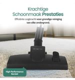 Dankzij het ergonomische design is de stofzuiger gemakkelijk te hanouvreren en te gebruiken, waardoor het schoonmaken minder vermoeiend wordt. Het lichte gewicht zorgt ervoor dat je moeiteloos door het hele huis kunt bewegen en zelfs de moeilijk bereikbare plekjes kunt bereiken. Met de verschillende accessoires die bij de stofzuiger worden geleverd, zoals de combiborstel en kierenzuigmond, ben je altijd goed uitgerust voor elke schoonmaakklus.