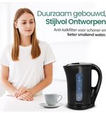 De waterkoker is voorzien van een ruime inhoud van 1,7 liter, wat voldoende is om aan de behoeften van het hele gezin of een groep vrienden te voldoen. Het ergonomische handvat zorgt ervoor dat je de waterkoker eenvoudig kunt vasthouden en uitschenken. Zo wordt het maken van thee, koffie of soep een moeiteloze en plezierige ervaring.