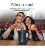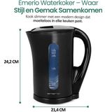 Met zijn strakke zwarte behuizing en elegante RVS accenten brengt de Emerio WK-123483 een vleugje moderniteit in je keuken. Het lichtindicatielampje geeft aan wanneer de waterkoker in werking staat, wat zorgt voor een extra stukje gemak en veiligheid. Dankzij het hoge vermogen van 2200 Watt brengt deze waterkoker het water in een mum van tijd aan de kook. Geen lange wachttijden meer, maar direct genieten van je favoriete warme drank.