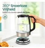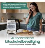 De waterkoker is voorzien van handige functies die het gebruiksgemak optimaliseren. Het afneembare en 360° draaibare voetstuk maakt het plaatsen en oppakken van de waterkoker eenvoudig, terwijl de waterniveau-indicator je precies laat zien hoeveel water er nog in zit. Daarnaast zorgt de automatische uitschakelfunctie ervoor dat de waterkoker stopt met verwarmen zodra het water de juiste temperatuur heeft bereikt, waardoor energie wordt bespaard en oververhitting wordt voorkomen.