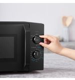 Met een vermogen van 800 watt en diverse kookinstellingen biedt deze magnetron de veelzijdigheid die nodig is voor een snelle en efficiënte bereiding van uw favoriete gerechten. Het gebruiksgemak staat voorop; dankzij de intuïtieve bediening met een draaiknop en knoppen kunt u snel de juiste instellingen kiezen. Of u nu een gerecht opwarmt, een snack bereidt of zelfs een maaltijd kookt, de krachtige magnetron levert altijd betrouwbare resultaten.