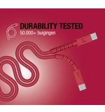 De Fresh 'n Rebel Flexwave Silicone Braided 100W USB-C Kabel in de levendige kleur berry red is meer dan zomaar een kabel; het is een statement van stijl en functionaliteit. Deze kabel komt in een prachtige tint die opvalt, waardoor je niet alleen je apparaten kunt opladen, maar ook een stukje persoonlijkheid toevoegt aan je dagelijkse accessoires. Het ontwerp met siliconen omhulsel geeft een gevoel van duurzaamheid en luxe. Dit betekent niet alleen dat je verzekerd bent van een lange levensduur, maar ook dat de kabel prettig aanvoelt in de hand en eenvoudig te hanteren is.