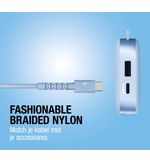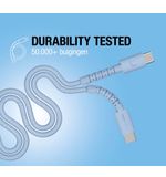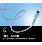 De innovatieve, silicone gevlochten constructie van de kabel zorgt ervoor dat deze niet alleen flexibel is, maar ook extra sterk. Dit betekent dat je met vertrouwen je kabel kunt gebruiken, zonder bezorgd te zijn over slijtage of schade. Het moderne ontwerp in Vivid Blue voegt bovendien een vleugje persoonlijke stijl toe aan je gadgets. Laat je niet misleiden door de technische specificaties; deze kabel heeft ook een esthetische aantrekkingskracht die in elke omgeving tot zijn recht komt. De levendige kleur zorgt ervoor dat je kabel opvalt tussen andere accessoires, waardoor je hem gemakkelijk kunt terugvinden, waar je hem ook laat liggen.