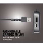 Neem het mee in je tas, je rugzak of leg het gewoon op je bureau, het elegante en strakke design geeft je ruimte een moderne toets. Langer gebruik? Geen probleem. De Flexwave kabel is ontworpen om niet alleen mooi te zijn, maar ook functioneel. De stevigheid van het materiaal zorgt ervoor dat de kans op slijtage aanzienlijk wordt verminderd, waardoor je verzekerd bent van een langdurige en stabiele verbinding.