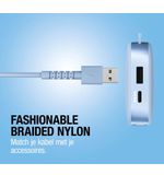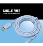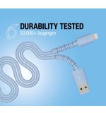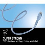 De Flexwave-kabel is vervaardigd met een sterke silicone ommanteling, wat zorgt voor een duurzame en flexibele constructie. Dit betekent dat je deze kabel gemakkelijk kunt oprollen, in je tas kunt stoppen en overal mee naartoe kunt nemen. De stof is bovendien bestand tegen slijtage, waardoor je kunt vertrouwen op de lange levensduur van dit product. Gebruikers hebben de eenvoudige bediening en de robuuste kwaliteit van de kabel geprezen, waardoor deze perfect is voor zowel thuisgebruik als onderweg.