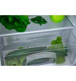 De binnenruimte van de koelkast is optimaal ingedeeld en biedt voldoende opslagcapaciteit voor al je dagelijkse boodschappen. Dankzij de praktische indeling zijn zowel flessen als levensmiddelen eenvoudig te organiseren. De legplanken zijn verstelbaar, wat zorgt voor flexibiliteit in de opbergruimte. Of je nu grote flessen sap of kleine pakketjes yoghurt wilt opbergen, alles vindt gemakkelijk zijn plek. De transparante groentelade blijft je verse producten perfect beschermen en houdt ze langer houdbaar, terwijl je snel kunt zien wat je in voorraad hebt.