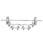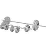 De halterset bestaat uit verschillende halterschijven van hoogwaardig gietijzer, variërend in gewicht, van lichtere tot zwaardere schijven. De solide kwaliteit van het gietijzer zorgt voor duurzaamheid en betrouwbaarheid tijdens intensieve work-outs, waardoor je keer op keer jouw grenzen kunt verleggen. De veersluitingen zorgen ervoor dat de halterschijven stevig op hun plek blijven, zelfs bij de meest dynamische oefeningen. Zo kun je met een gerust hart jouw trainingsschema volgen, zonder je zorgen te maken over wiebelende gewichten.