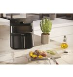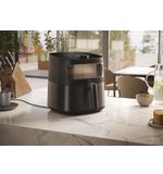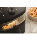 De strakke zwarte kleur en het moderne design van deze heteluchtfriteuse voegen een vleugje elegantie toe aan jouw keuken. Het grote kijkvenster stelt je in staat om het kookproces in de gaten te houden zonder de deksel te hoeven openen. Daarnaast is de friteuse eenvoudig te reinigen, waardoor je meer tijd kunt besteden aan genieten van heerlijke maaltijden en minder tijd aan schoonmaken.