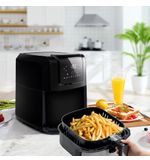 Dankzij de heteluchtfunctie van de Hisense H06AFBS1S3 kun je frituren, bakken, braden en grillen met minimale tot geen olie en dus minder vet. Hierdoor geniet je niet alleen van smakelijke gerechten, maar ook van een bewuste en gezonde kookervaring. Met deze heteluchtfriteuse zet je in een handomdraai knapperige frietjes, sappige kippenvleugels, groenten en andere lekkernijen op tafel, zonder het gedoe en de ongemakken van traditioneel frituren.