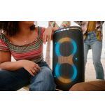 Dankzij zijn robuuste ontwerp en handige wielen neem je de Partybox Club 120 moeiteloos overal mee naartoe. Het feest stopt dus nooit, of je nu in de tuin, op het strand of bij vrienden thuis bent. De batterij gaat maar liefst tot 14 uur mee, zodat je de hele dag en avond kunt genieten van je favoriete muziek.