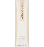 De flacon van Lacoste pour femme eau de parfum is net zo stijlvol als de geur zelf. Het transparante glas onthult de zachtroze tint van de vloeistof en de iconische krokodil van Lacoste siert trots de dop. De eenvoudige en moderne vorm van de flacon past perfect bij de tijdloze elegantie van de geur en zal prachtig staan op je kaptafel.