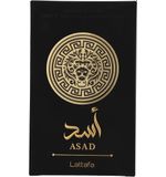 Asad is niet alleen een parfum; het is een ervaring. Het roept beelden op van luxe en klasse, gedragen door de moderne man die weet wat hij wil en dit ook uitstraalt. Deze geur is perfect voor elke gelegenheid, of u nu naar een belangrijk evenement gaat, een avondje uit plant of gewoon uzelf wilt verwennen. De elegante fles, ontworpen met oog voor detail, is een prachtige aanvulling op uw parfumcollectie. Laat Asad uw dagelijkse ritueel transformeren en ervaar zelf de allure van deze onvergetelijke geur.