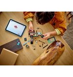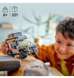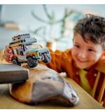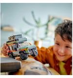 De stevige 4x4 terreinwagen is uitgerust met robuuste banden en een sterke vering, wat hem geschikt maakt voor elk soort denkbeeldig avontuur dat je kind kan bedenken. Het ontwerp van de auto roept een gevoel van avontuur en vrijheid op, terwijl het compacte formaat en de kleurstelling hem perfect maken voor jonge bouwers die dol zijn op stoere voertuigen. Naast de terreinwagen bevat de set ook een minifiguur van een avonturier, compleet met een helm en andere accessoires die het avontuur compleet maken.