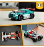 De LEGO Creator Straatracer - 31127 bestaat uit 210 onderdelen, waarmee kinderen een geweldige straaljager-blauwe raceauto kunnen bouwen. De auto heeft een gestroomlijnd ontwerp met coole details, zoals een getinte voorruit, een grote achterspoiler en stoere racestickers. Dankzij de verstelbare spoiler en de openende motorkap kunnen kinderen echt meespelen en elke keer nieuwe avonturen bedenken.