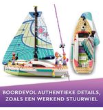 Met LEGO Friends Stephanies zeilavontuur kunnen kinderen in de rol van Stephanie kruipen en haar tot leven brengen. Stephanie is een enthousiaste zeiler en klaar om de golven te trotseren. Ze draagt haar coole zeiloutfit en is uitgerust met alles wat ze nodig heeft voor een geweldig avontuur op zee. Het zeiljacht heeft tal van realistische details en accessoires, waaronder een botendek met ligstoel, een stuurwiel, een afneembaar dak en een keukentje. Kinderen kunnen zich echt inleven in Stephanie's zeilavontuur en haar helpen om de boot te besturen, de zeilen te hijsen en de bestemming te verkennen.