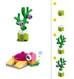 Dompel jezelf onder in een onderwaterwereld vol fantasie en verbeelding. Bouw je eigen zeedieren, zoals kleurrijke vissen, schattige zeesterren en angstaanjagende haaien. Creëer een prachtig koraalrif met de verschillende elementen en geef het een uniek tintje met de vele kleuren en vormen die deze set te bieden heeft.