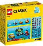 Met de LEGO Classic Stenen en wielen kunnen kinderen hun creativiteit de vrije loop laten! Deze set zit boordevol kleurrijke stenen en speciale elementen, waaronder een schat aan wielen, zodat kinderen eindeloos kunnen bouwen en spelen. Of je nu een stoere racewagen wilt maken, een fantastisch ruimteschip of gewoon je eigen unieke creaties, met deze set is alles mogelijk!
